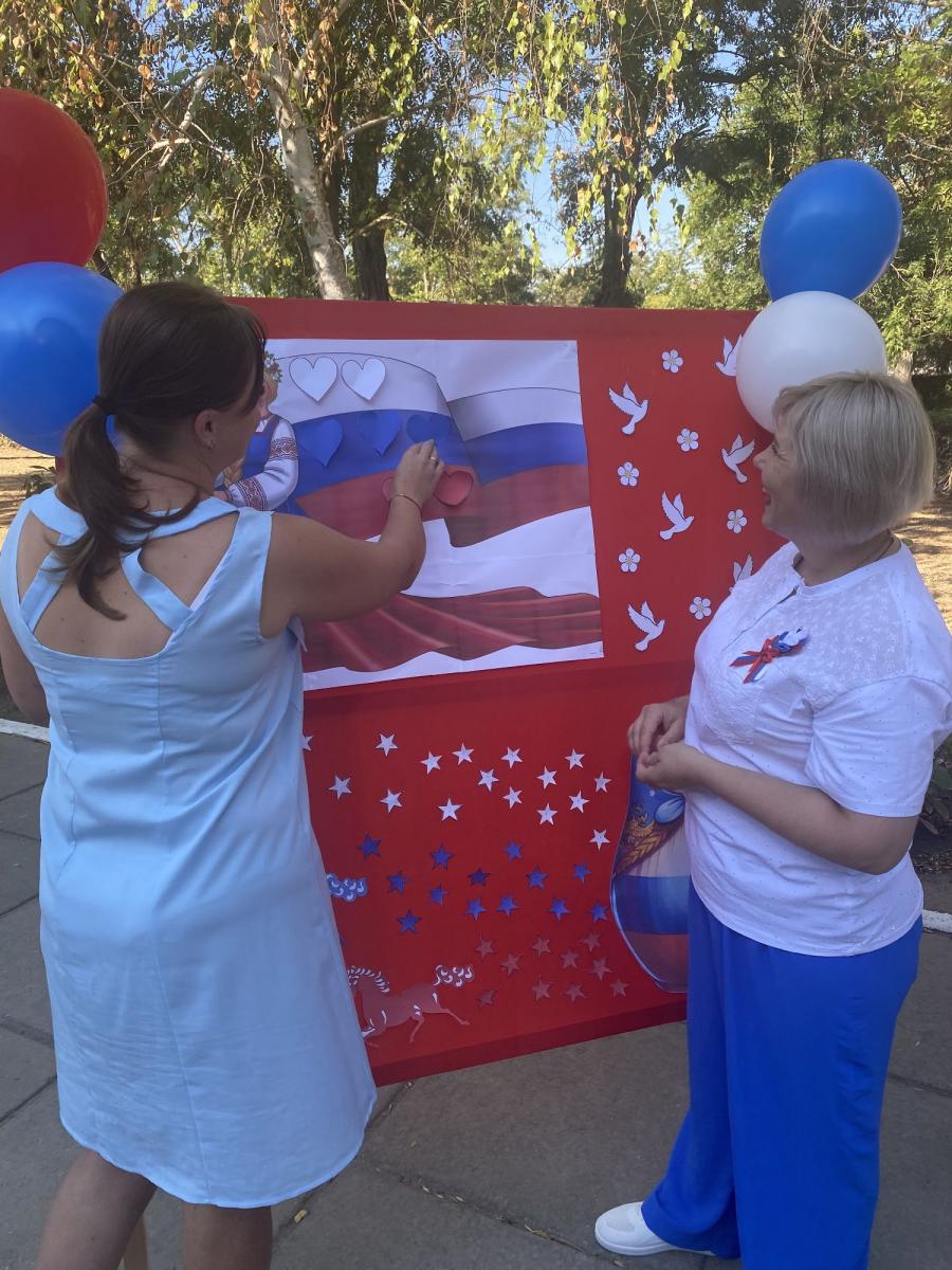 В ходе акции прохожим раздавали информационный листок «Флаг Росси – символ величия и славы» рассказывающий об истории появления российского триколора, его цветовой символики, его значении и важной роли в жизни каждого гражданина РФ. Так же каждый желающий отвечал на вопросы кроссворда «Наша Родина – Россия». Участники акции, даря свою частичку сердца, оформили красочную аппликацию «Флаг России – наши сердца».