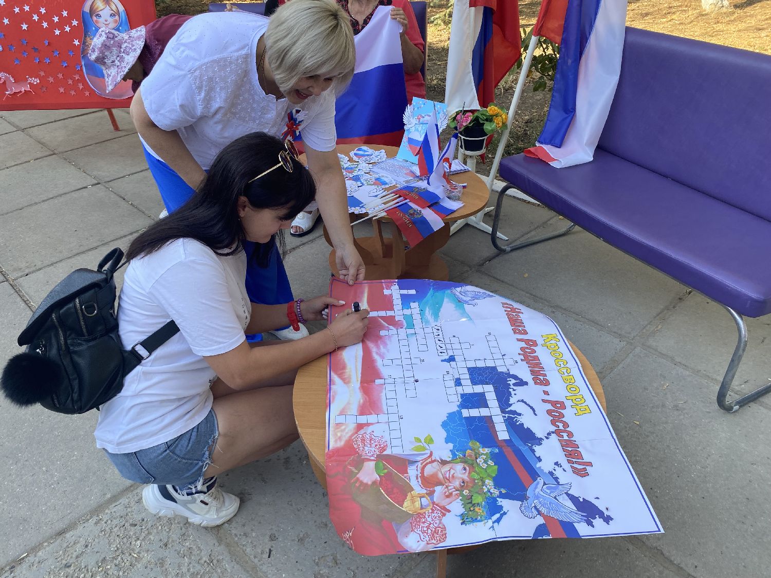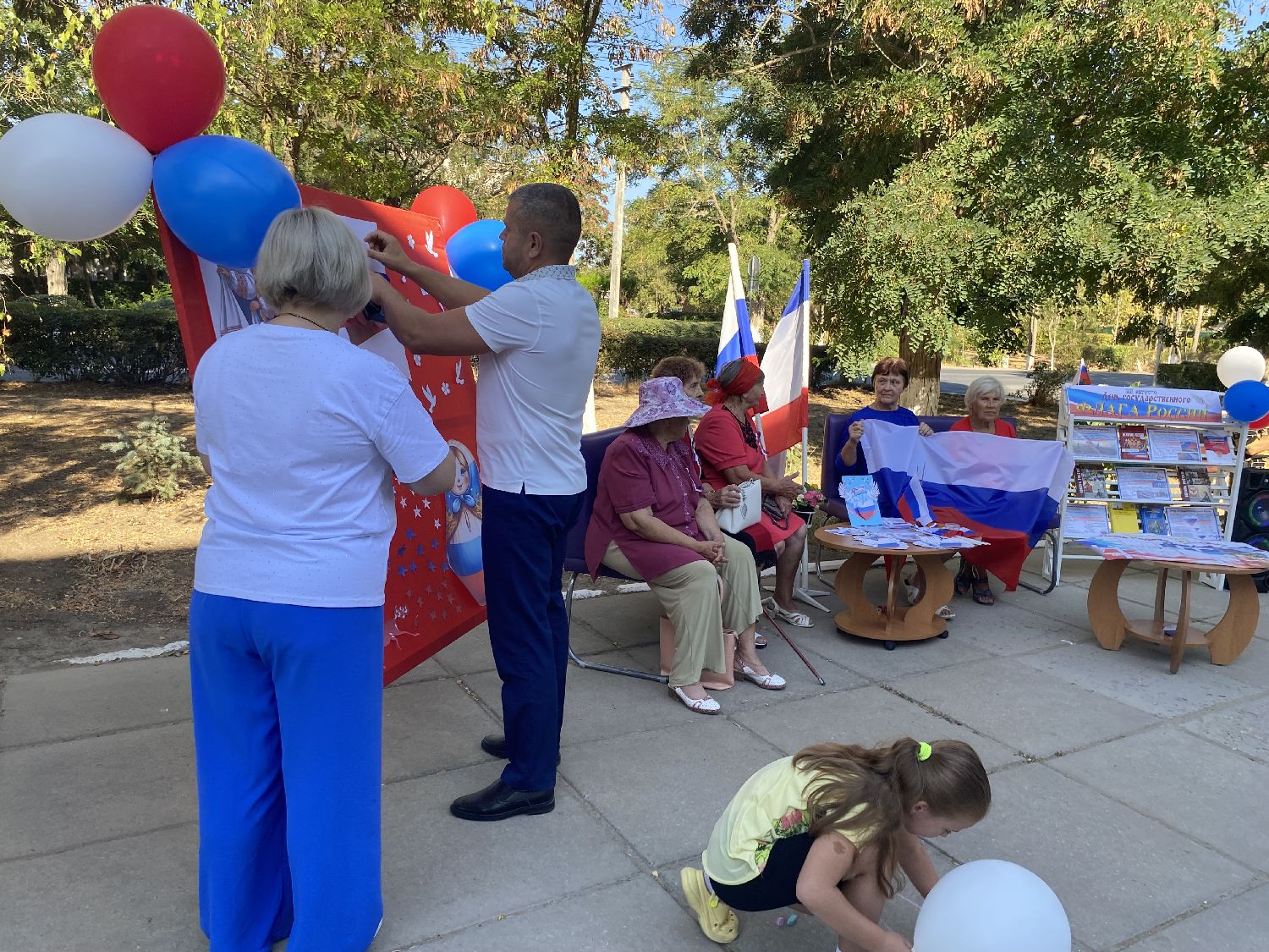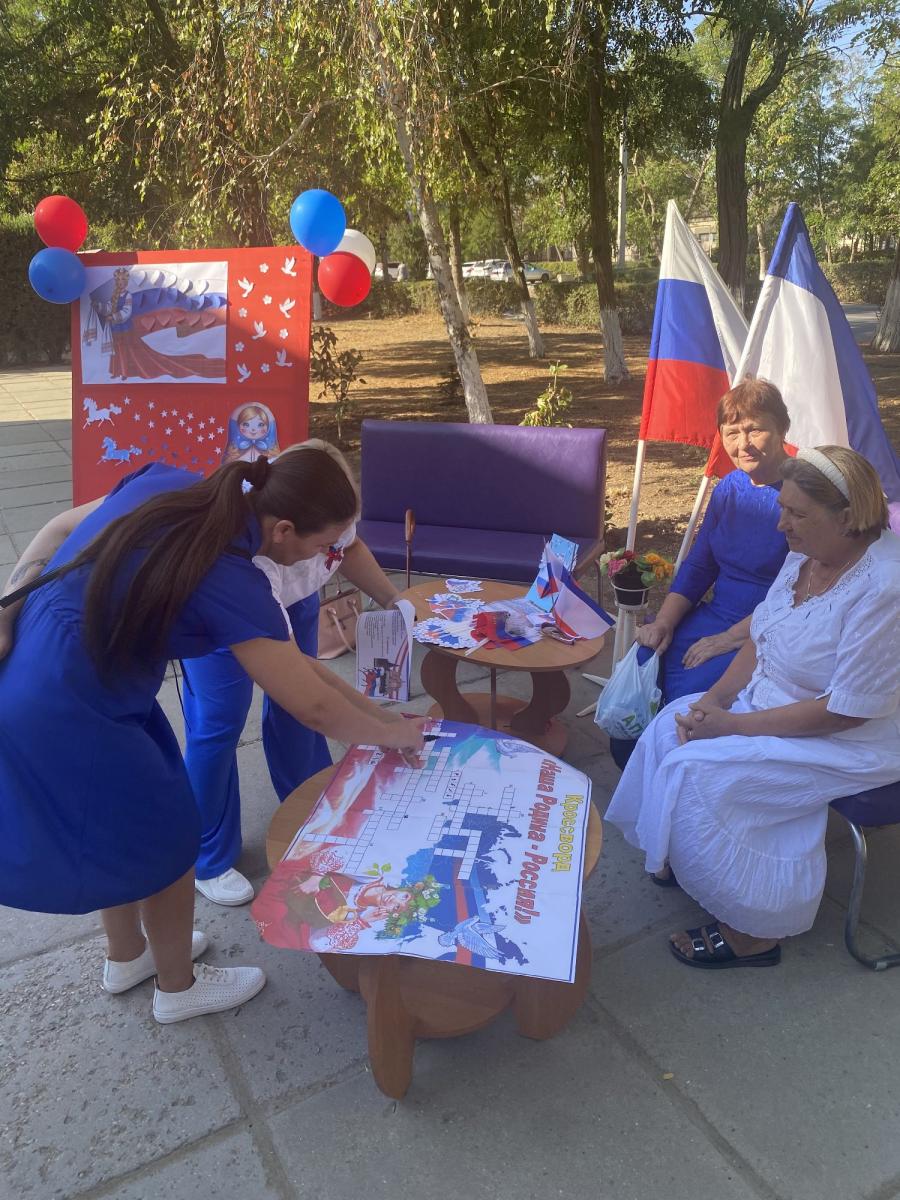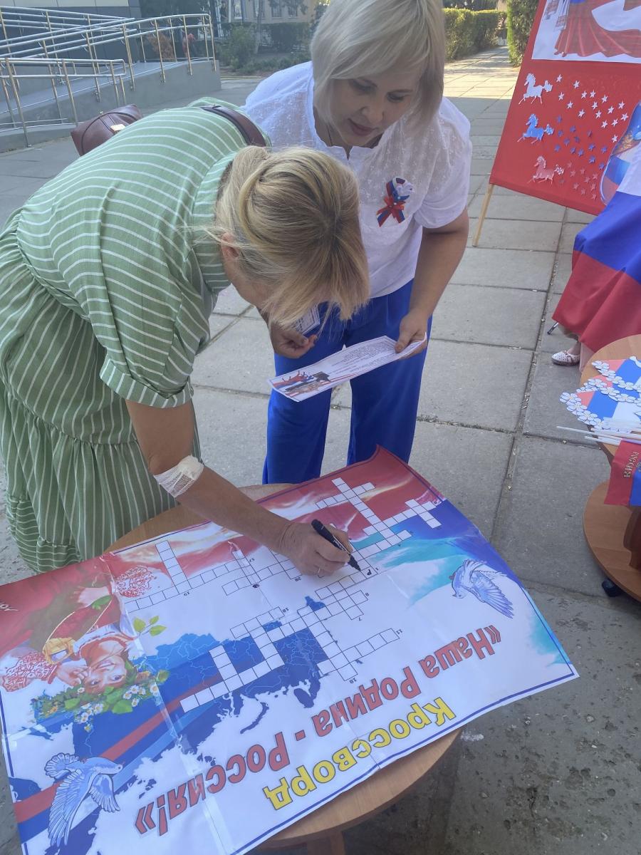 Сотрудники Раздольненской центральной районной библиотеки им. А.И. Домбровского для жителей и гостей поселка Раздольное подготовили и провели акцию «Душа России в символах ее». К акции присоединились Ольга Васильевна Ломоносова - Заместитель Главы Администрации Раздольненского района, Илья Иванович Марценюк - Директор муниципального бюджетного учреждения культуры и получатели социальных услуг ГБУ РК «Центр социального обслуживания граждан пожилого возраста и инвалидов Раздольненского района».