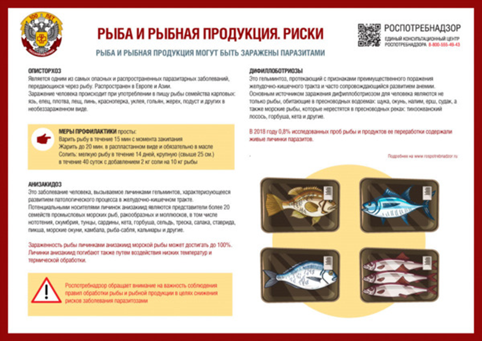 В целях профилактики возможных случаев пищевых отравлений, острых кишечных и паразитарных заболеваний от употребления некачественной рыбной продукции и морепродуктов, Территориальный отдел рекомендует населению: