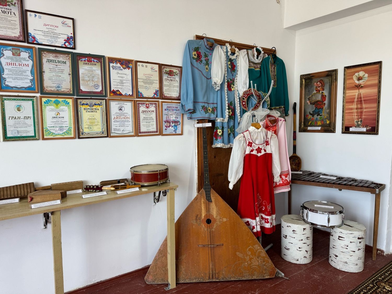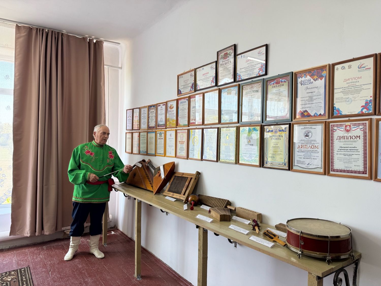 В начале мероприятия произошло знаменательное событие для Ручьевского сельского Дома культуры – открытие музейной комнаты образцового ансамбля народных инструментов «Саратовские гармоники». Бессменный руководитель коллектива ансамбля Разумов Валентин Михайлович провел краткую экскурсию по истокам истории создания и творческой деятельности коллектива. В музейной комнате размещены фотографии, грамоты, дипломы, благодарности, костюмы и музыкальные, народные инструменты, которые применялись в творческом исполнении инструментальной музыки на протяжении 45 лет. Среди экспонатов также представлена книга истории ансамбля с автобиографией руководителя, созданная его дочерью, Марусовой Еленой Валентиновной.