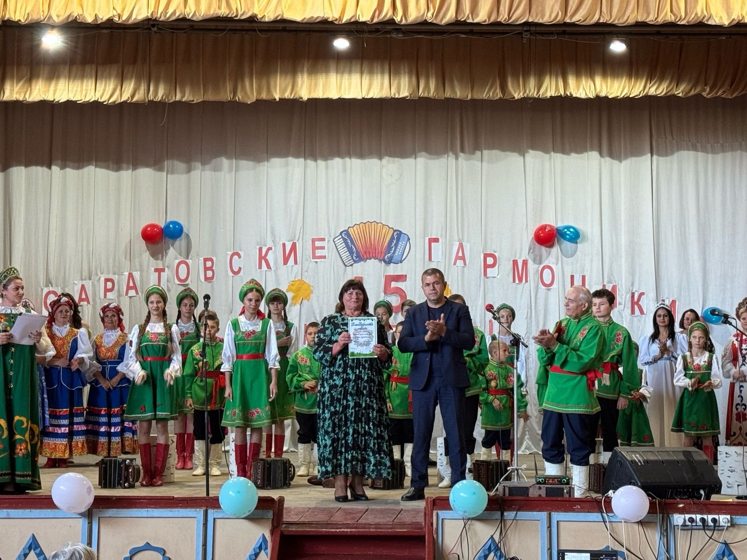 27 сентября в Ручьёвском сельском Доме культуры состоялся юбилейный концерт «Сыграй, гармонь, мотив заветный, тем, кто родился на селе!», посвященный 45-летию со дня основания образцового ансамбля народных инструментов «Саратовские гармоники».