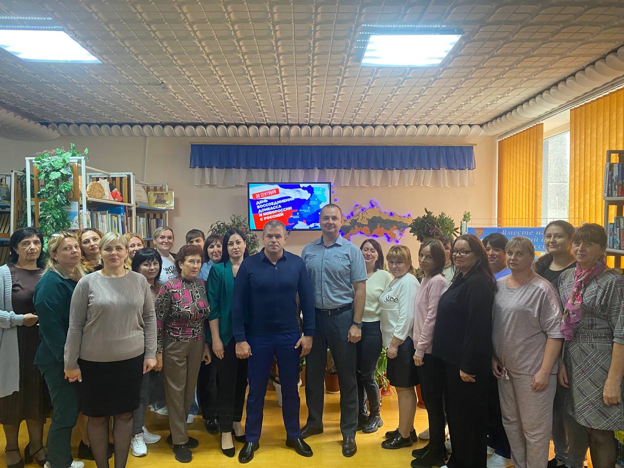 В ходе мероприятия библиотекарь рассказала присутствующим, о том, как произошло воссоединение с Россией осенью 2022 года, какой трудный путь прошли жители Донбасса, о важных событиях в истории Республики, о значении Донбасса для России, а также о тех, кто сейчас стоит на защите нашей Родины. Вниманию присутствующим был показан видеоролик с подписанием договоров о включении новых территорий после референдумов, на которых жители Донбасса и Новороссии практически единогласно поддержали присоединение к России.
