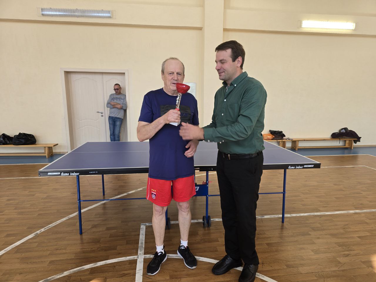 Кубок и сертификат за 1 место Сергею Попову вручил Артем Василюк, участник СВО, ветеран боевых действий, участник кадровой программы «Герои Крыма», член общественного совета при Минспорте РК и сборной РК по настольному теннису (ПОДА).