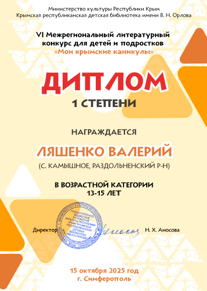VI Межрегиональный литературный конкурс для детей и подростков «Мои крымские каникулы»