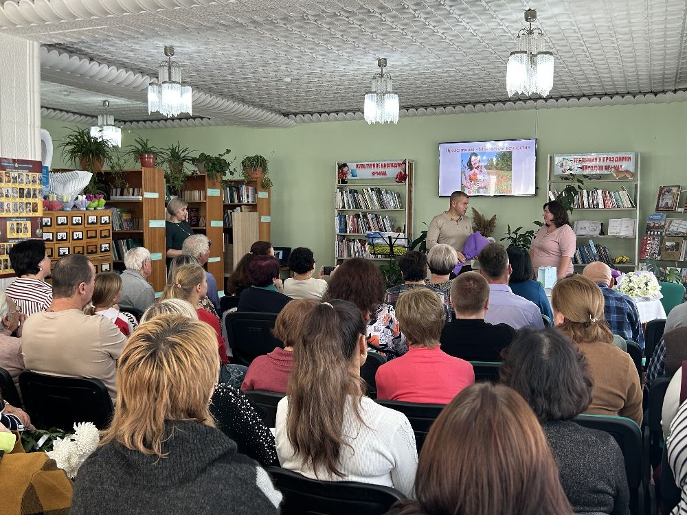 В этот солнечный осенний день в зале библиотеки собрались любители и почитатели поэзии. Почетные гости: Депутат Государственного Совета Республики Крым Хуторенко Жанна Львовна, Председатель Раздольненского районного совета Вышинская Татьяна Петровна, Директор Муниципального бюджетного учреждения культуры Марценюк Илья Иванович, а также коллеги, друзья, читатели библиотеки.