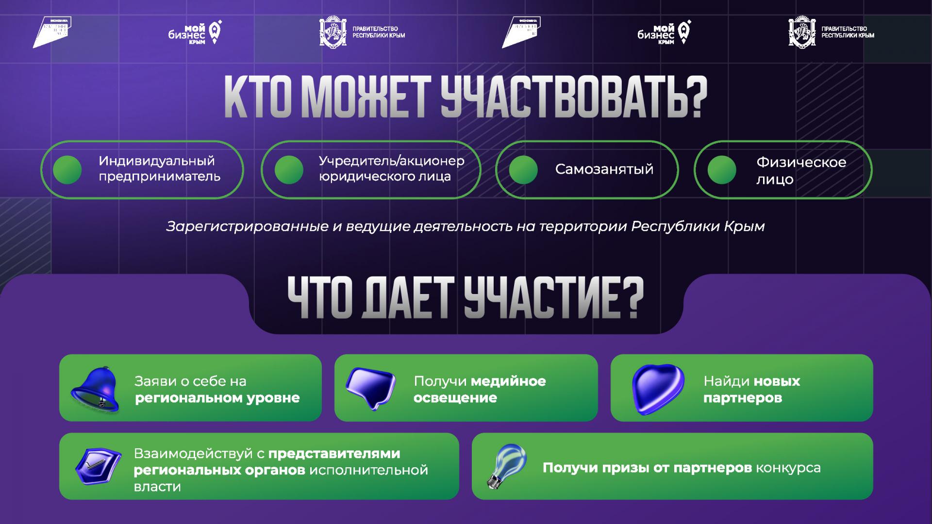 К участию приглашаются индивидуальные предприниматели, учредители/акционеры юридических лиц, самозанятые и физические лица Республики Крым.