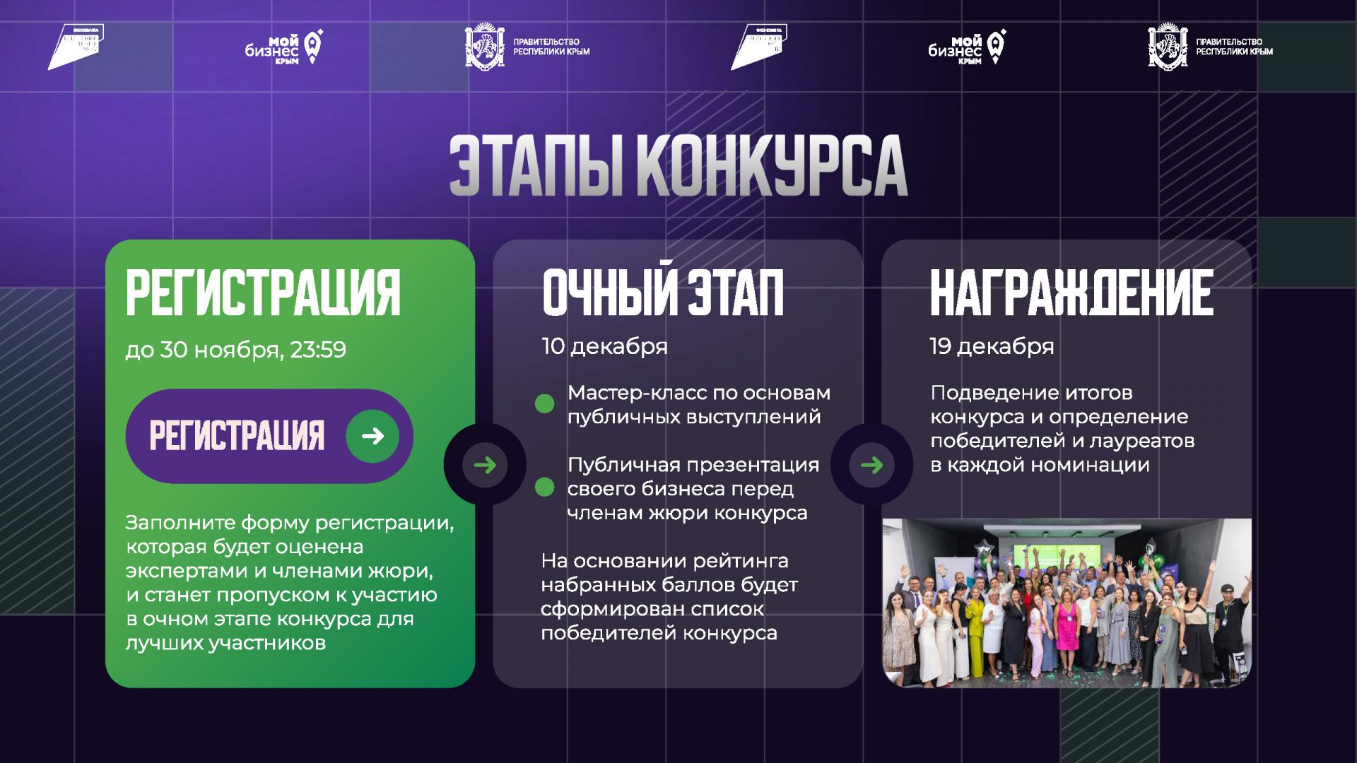 Не упустите возможность продемонстрировать свои достижения, получить признание и новые возможности для развития! Заполняйте заявку на https://конкурс-мойбизнес-крым.рф
