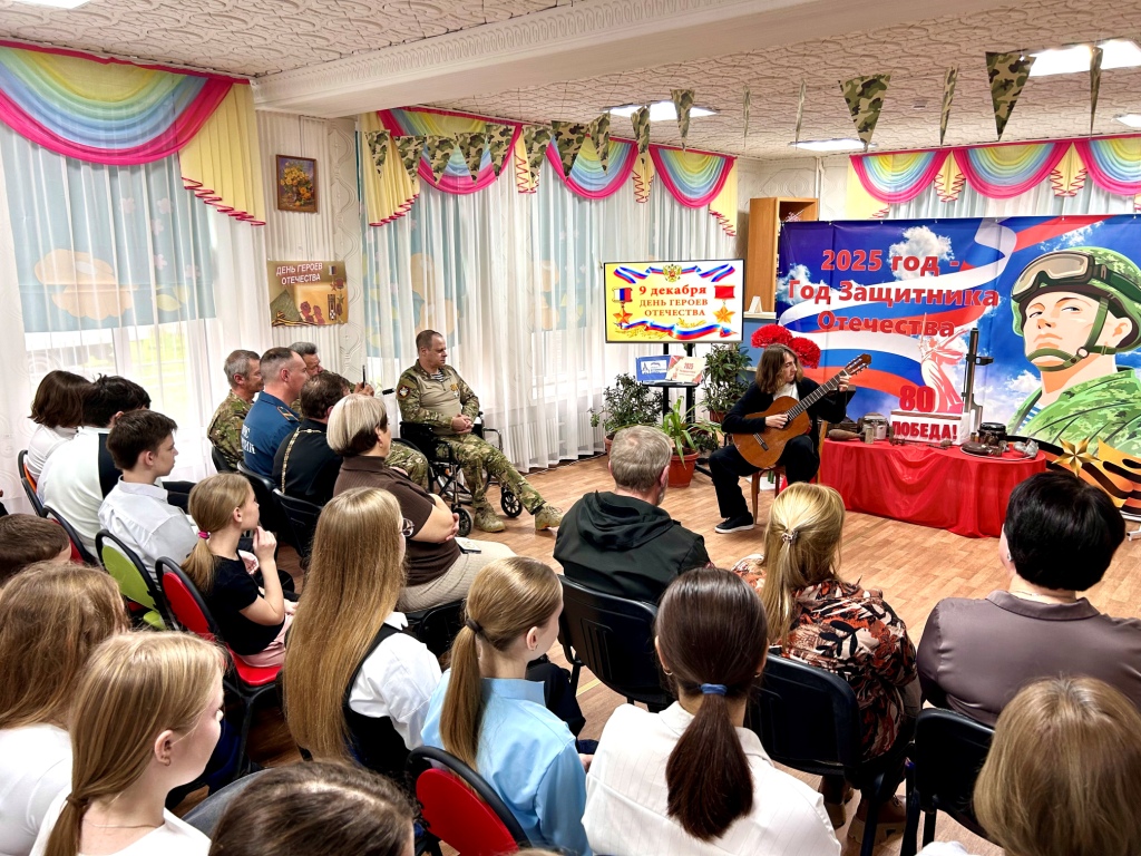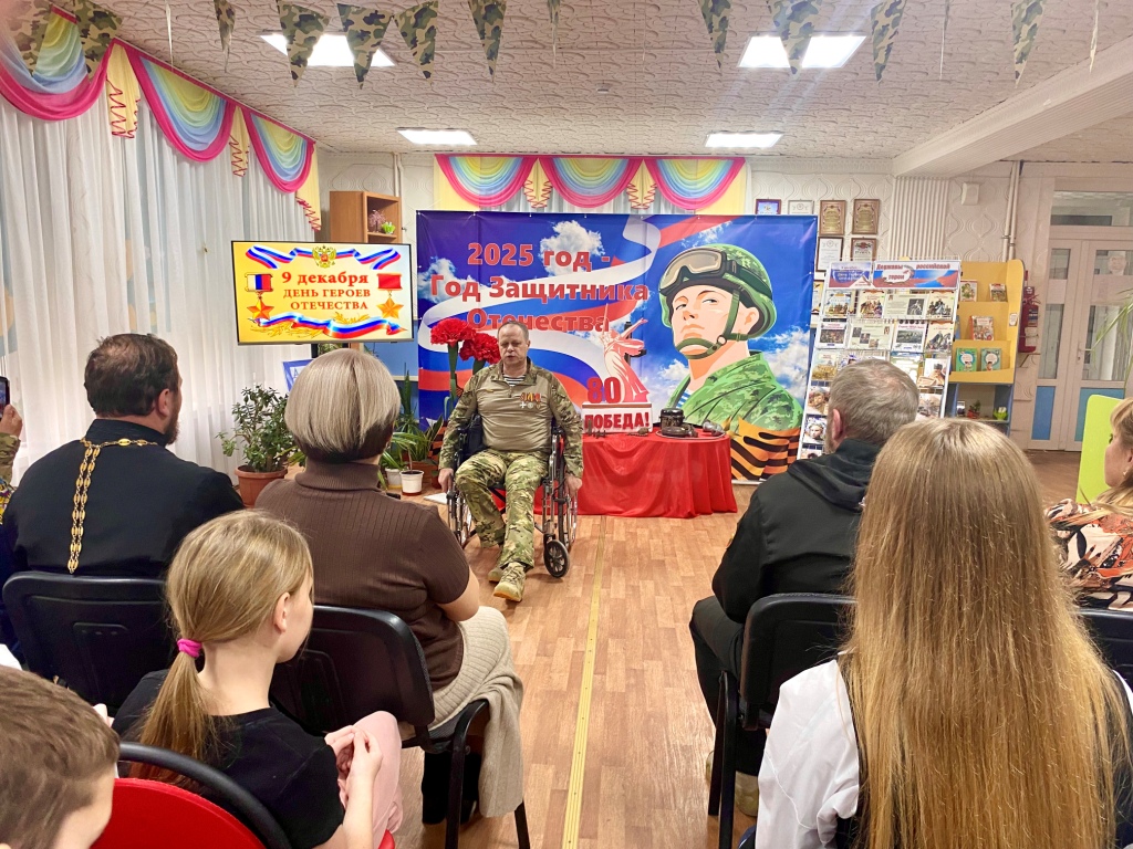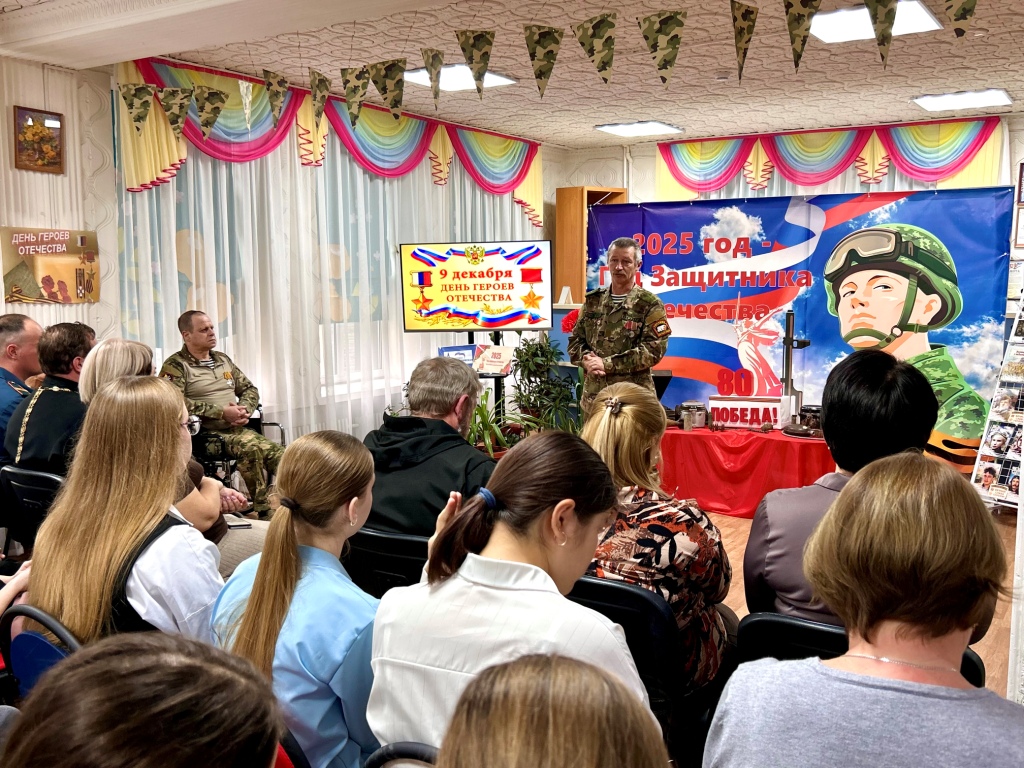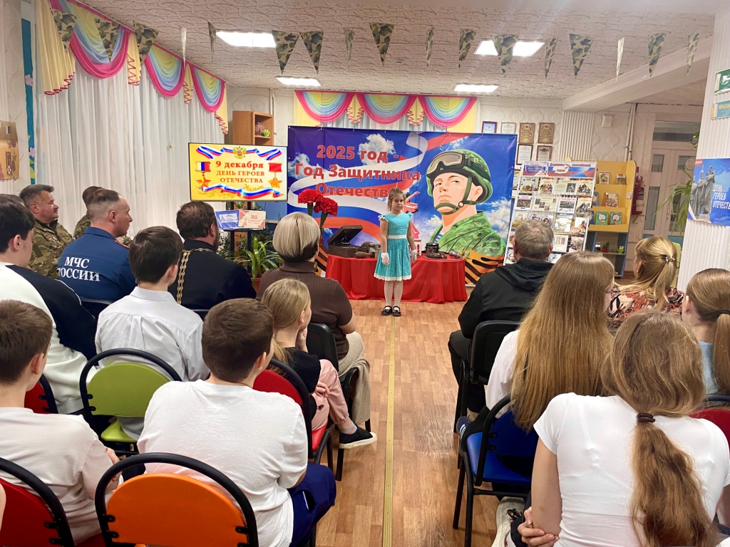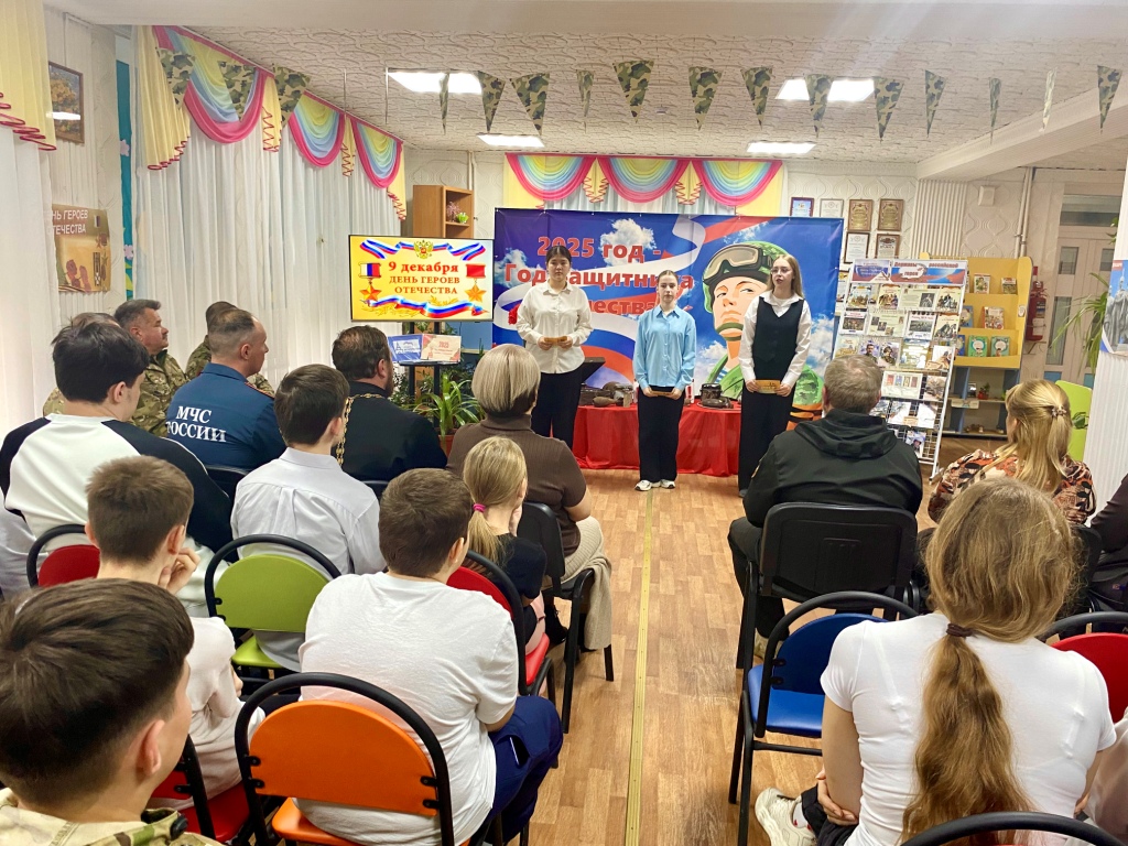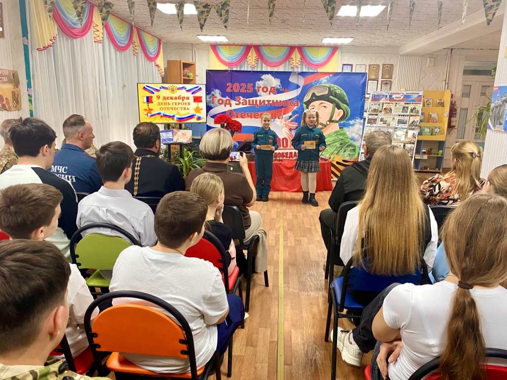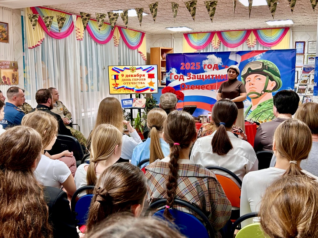 В рамках закрытия Года защитника Отечества в России и 80- летия Великой Победы, 9 декабря в Раздольненской центральной районной детской библиотеке для ребят «9-А" класса МБОУ Раздольненская школа - лицей № 1 им. А.И. Кузнецова /классный руководитель Р. Р. Ибрагимов / прошел Час мужества « Героям Отечества слава и честь».