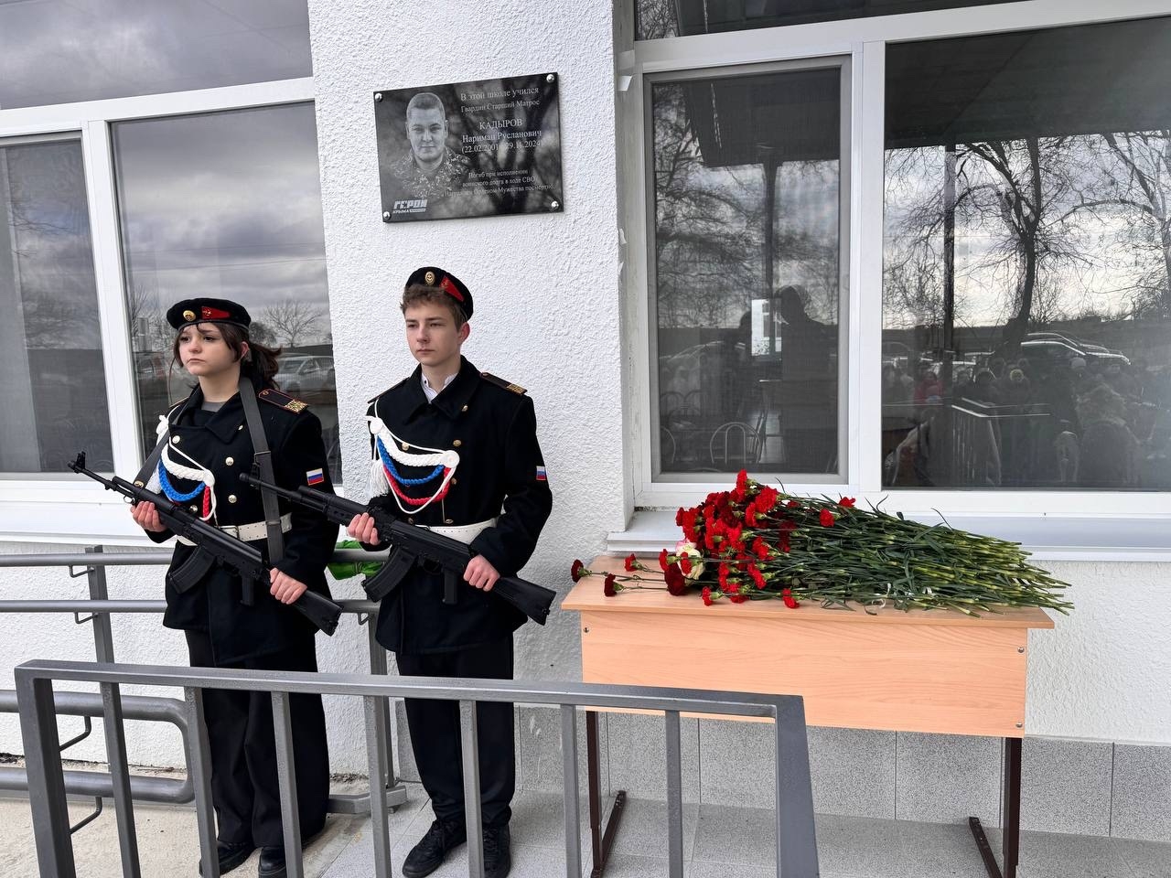 Вчера в МБОУ «Серебрянская школа — детский сад имени кавалера Ордена Мужества В. Тошмотова» состоялось торжественное открытие мемориальной доски в честь погибшего участника специальной военной операции Наримана Кадырова.