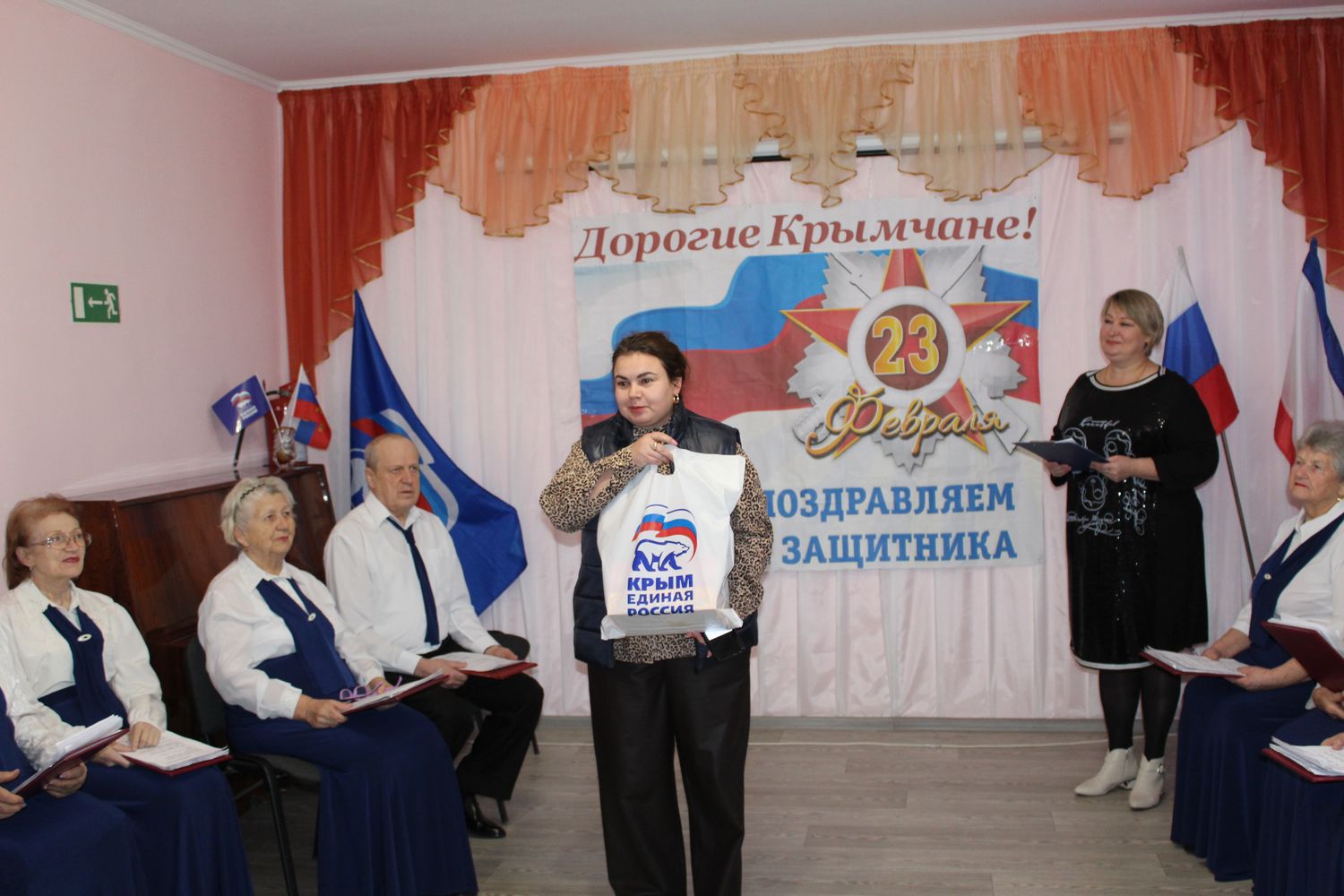 С наступающим праздником всех присутствующих мужчин, получателей социальных услуг и просто гостей мероприятия, поздравили исполнительный секретарь Раздольненского местного отделения Партии «Единая Россия» Черных Юлия Сергеевна, директор ГБУ РК «ЦСО граждан пожилого возраста и инвалидов Раздольненского района» Горбунов Олег Иванович, воин — интернационалист Скворцов Николай Семенович.