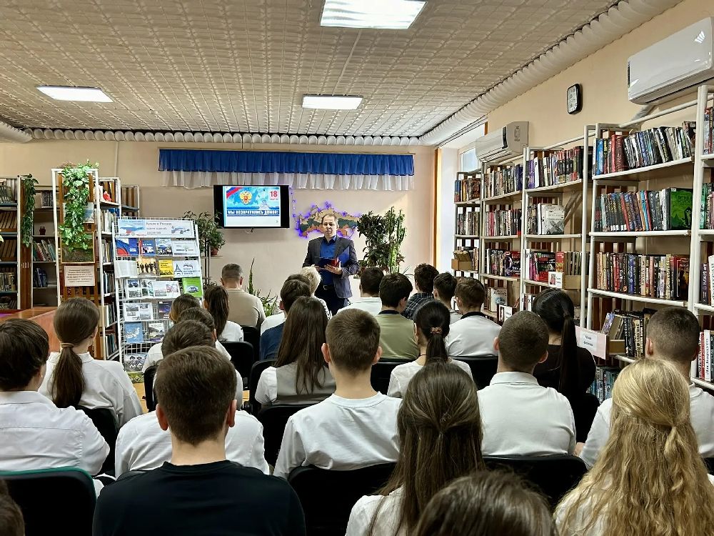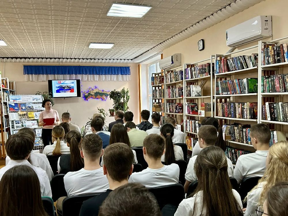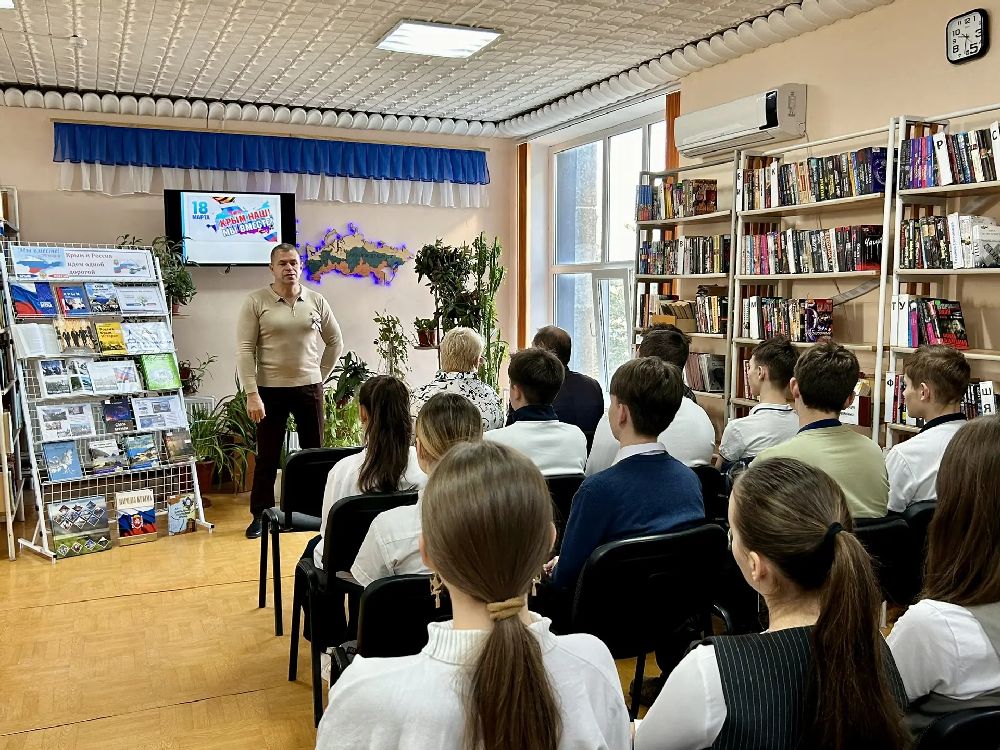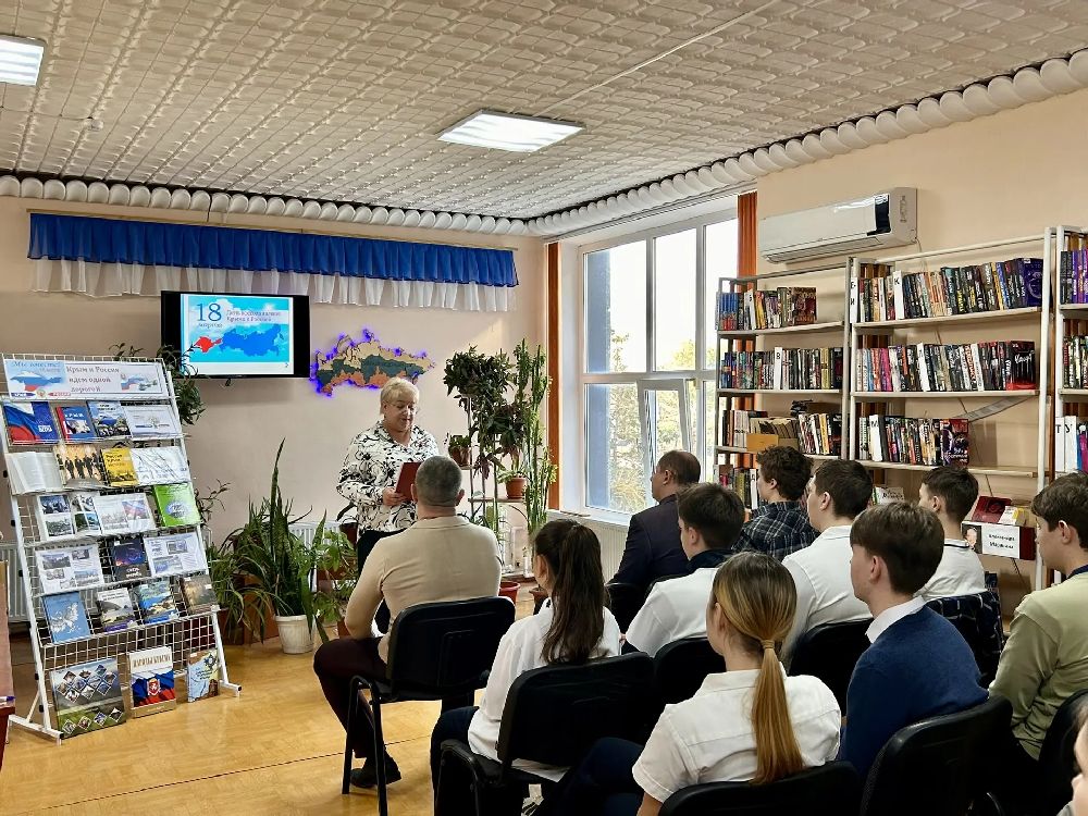 На полуострове идет подготовка к празднованию двенадцатой годовщины Крымской весны. В связи с этой датой и в рамках нравственно-патриотического воспитания молодого поколения 16 марта на юношеской кафедре Раздольненской центральной районной библиотеки им. А.И. Домбровского состоялся историко-краеведческий час «Многонациональный Крым: единство в разнообразии» с учащимися 8-А класса МБОУ «Раздольненская школа-лицей №1 им. А.И. Кузнецова» /классный руководитель О.В. Худык/. Целью данного мероприятия является разъяснение исторического значения воссоединения Крыма и России.