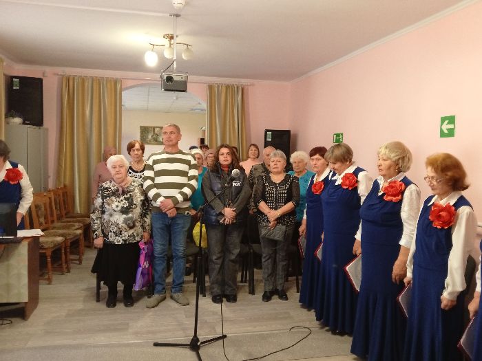 С огромным удовольствием присутствующие в зале принимали поздравления от серебряных волонтеров - участников ансамбля «Беспокойные сердца».