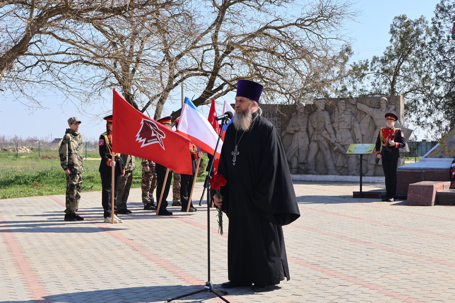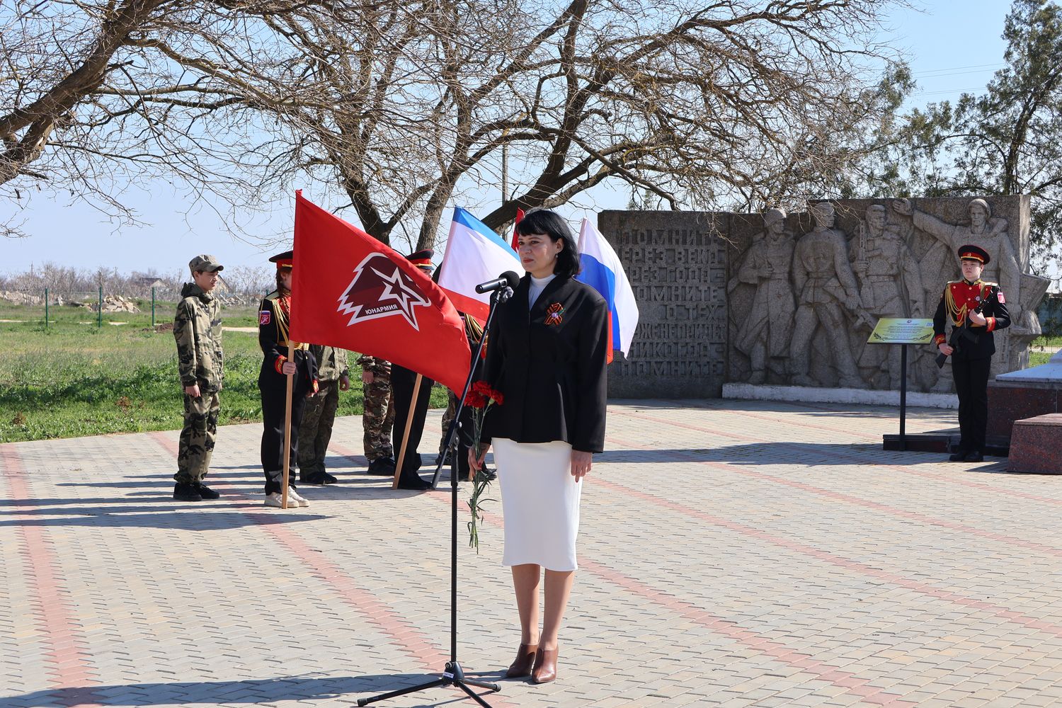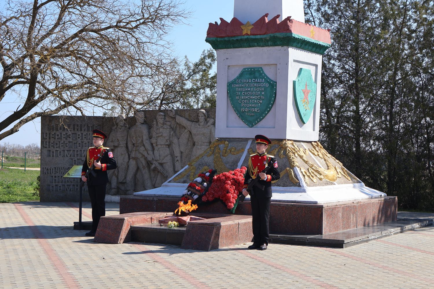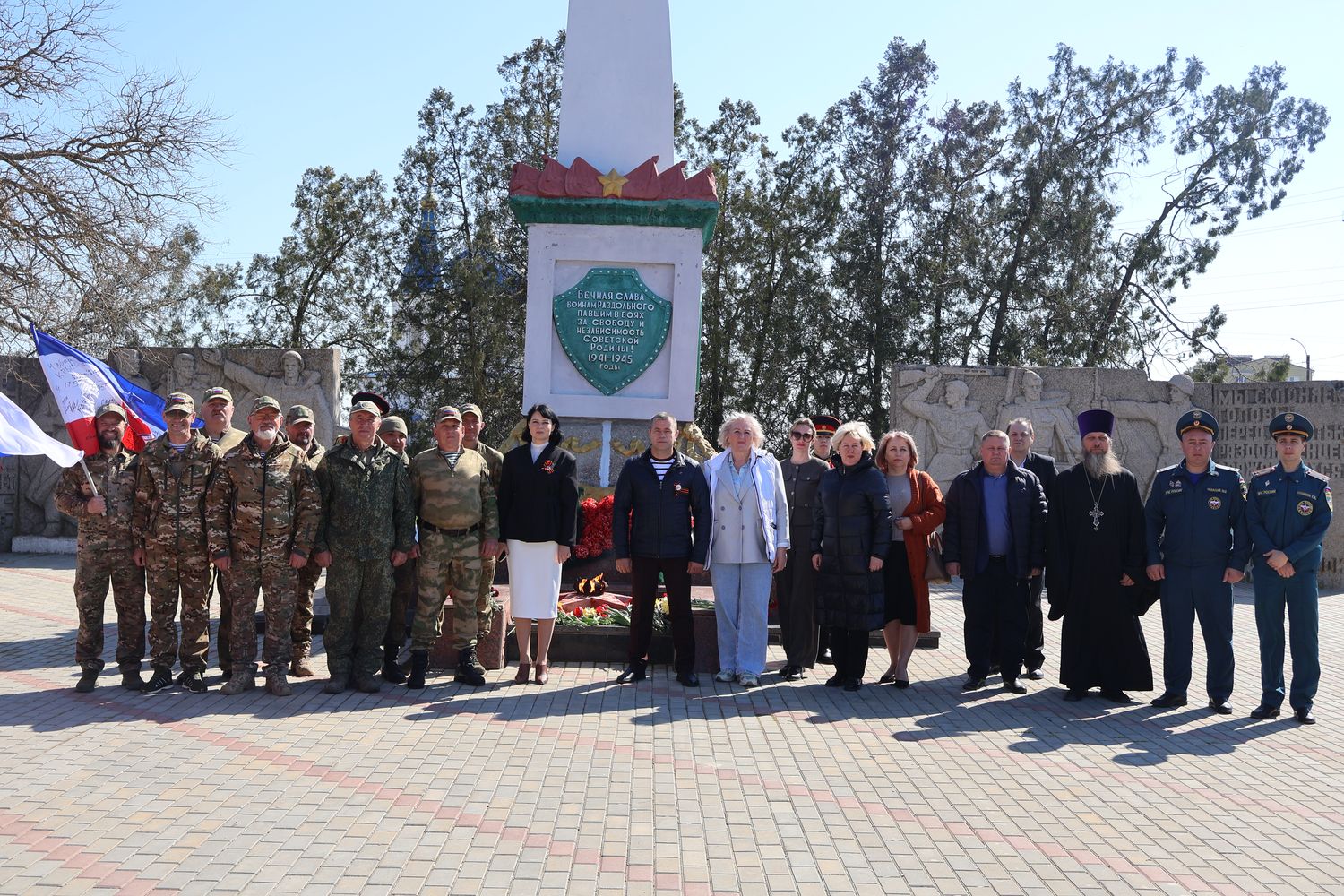 В поселке у Обелиска Славы погибшим односельчанам состоялось памятное мероприятие, посвящённое 82-й годовщине освобождения Крыма и Раздольненского района. Торжество открыл Почётный караул Вахты памяти поколений – «Пост №1».
