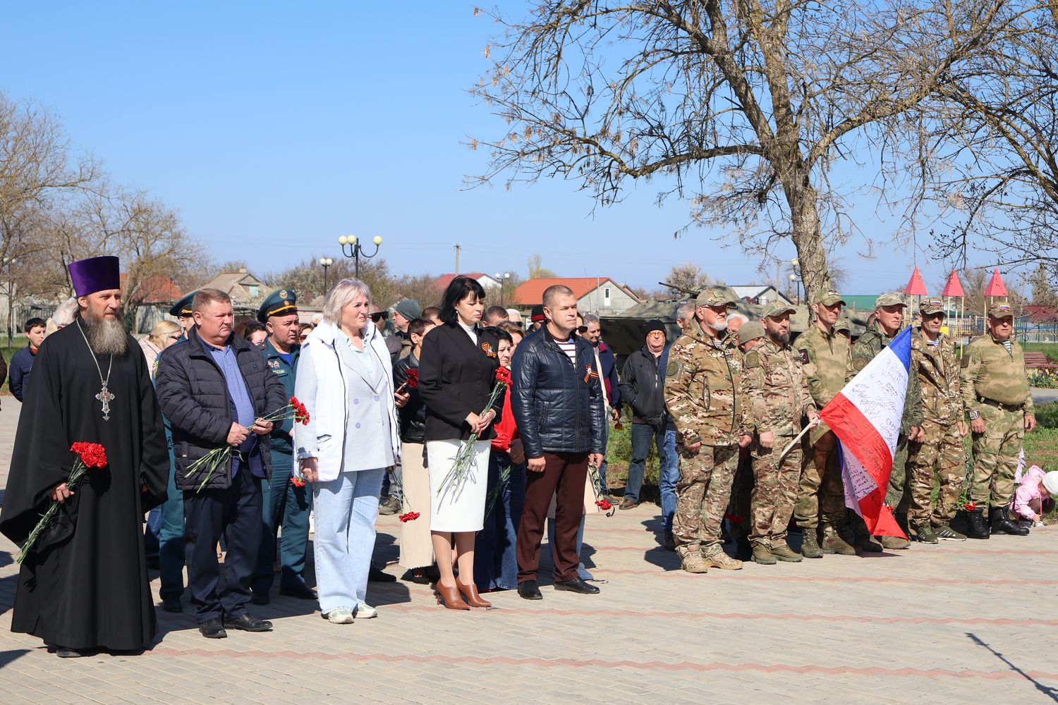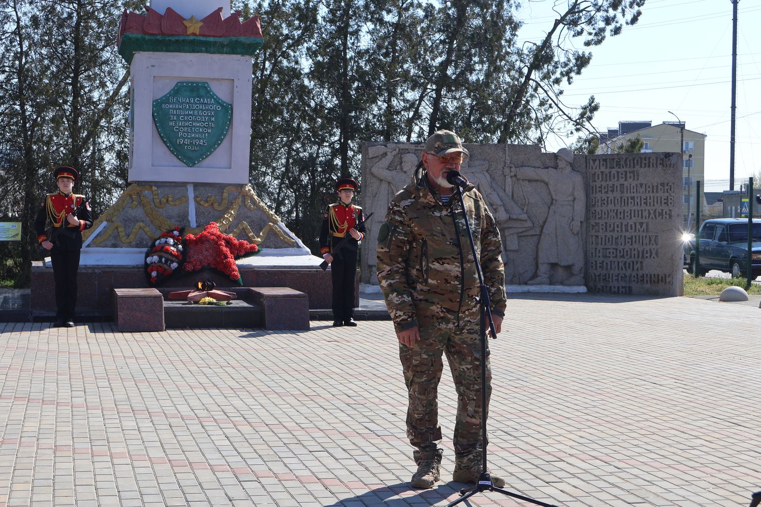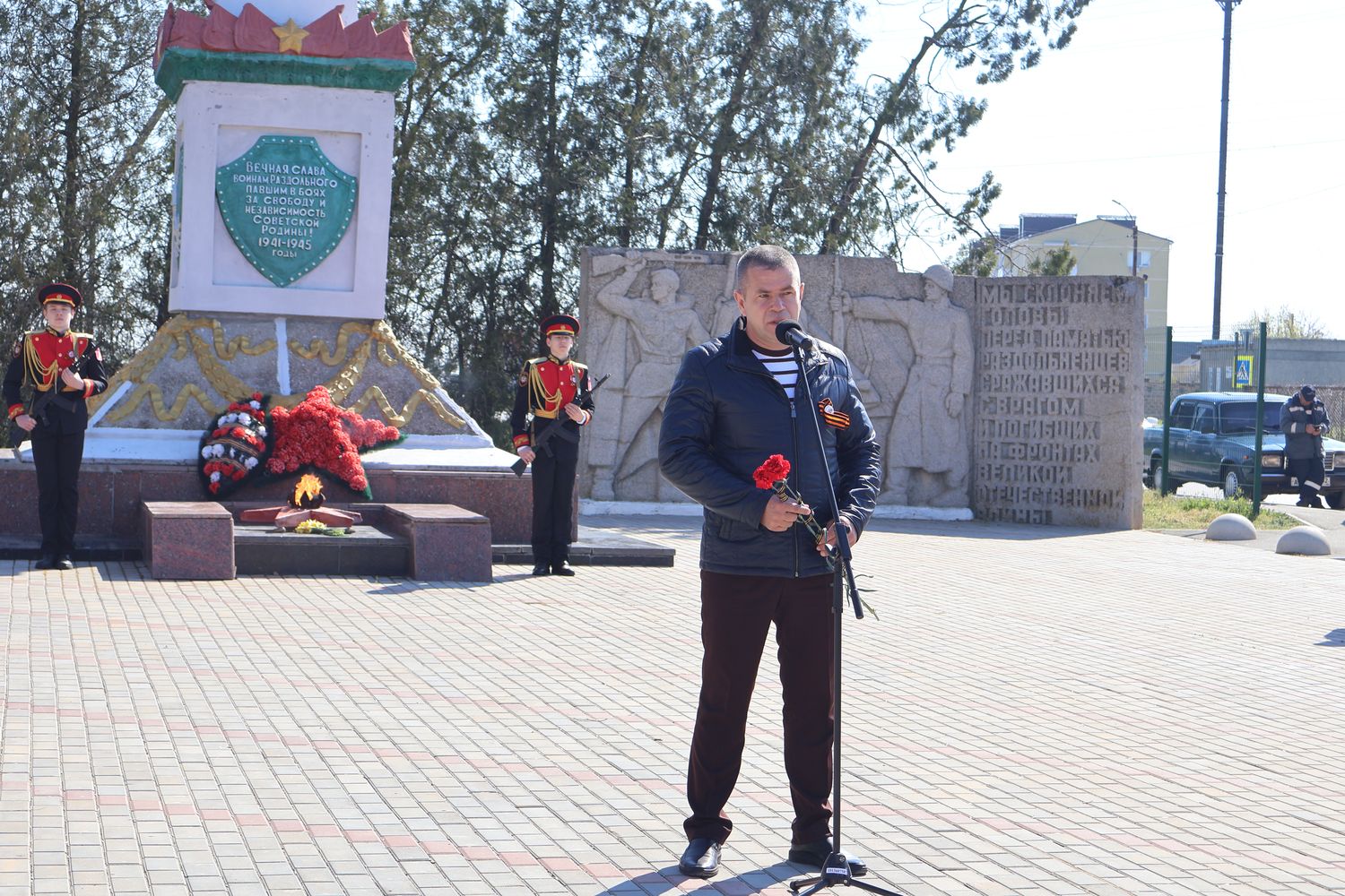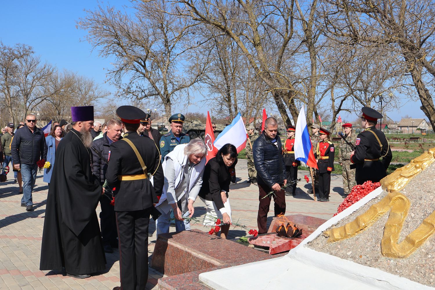 В поселке у Обелиска Славы погибшим односельчанам состоялось памятное мероприятие, посвящённое 82-й годовщине освобождения Крыма и Раздольненского района. Торжество открыл Почётный караул Вахты памяти поколений – «Пост №1».