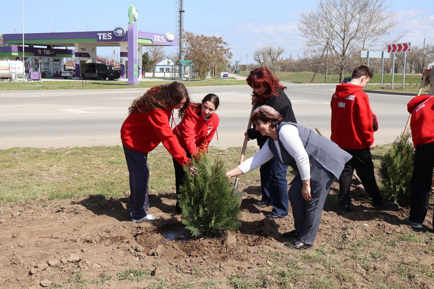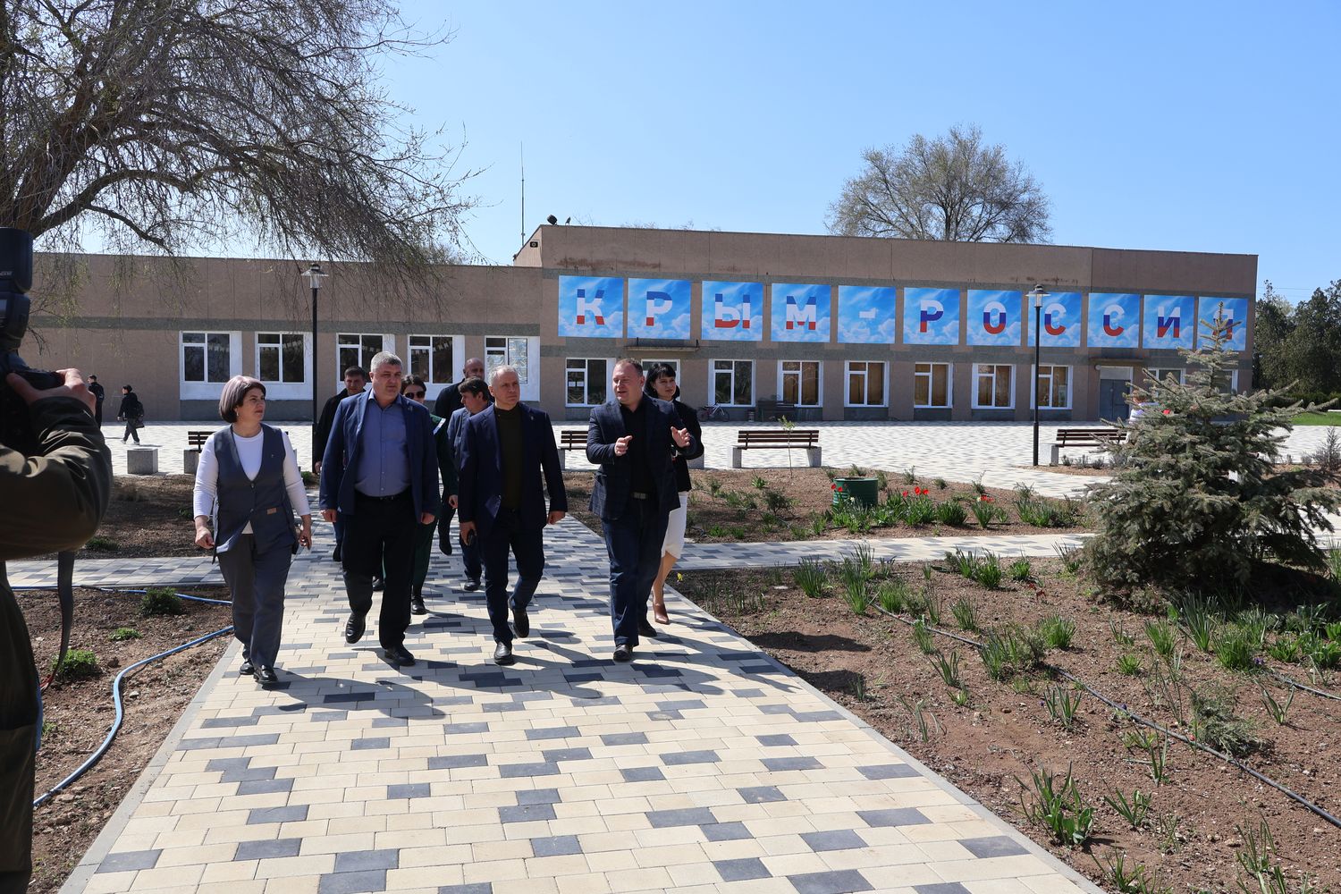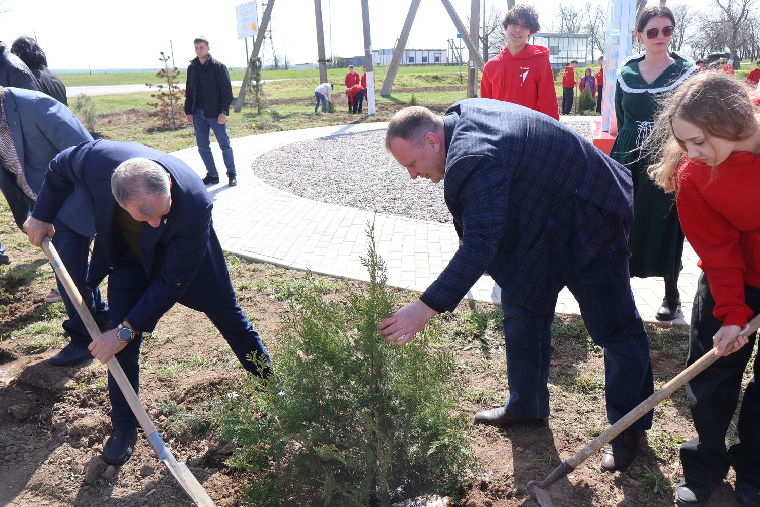 В посёлке Раздольное Владимир Константинов проинспектировал ход капитального ремонта центрального стадиона, а также вместе с активистами «Движения Первых» высадил деревья в сквере воинов-интернационалистов в рамках акции «Сад Памяти».