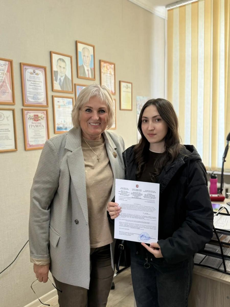 Сегодня, 24 апреля 2026 года заместитель главы Администрации Раздольненского района Ольга Ломоносова в торжественной обстановке вручила сертификат на приобретение жилья жительнице района из числа детей-сирот и детей, оставшихся без попечения родителей.